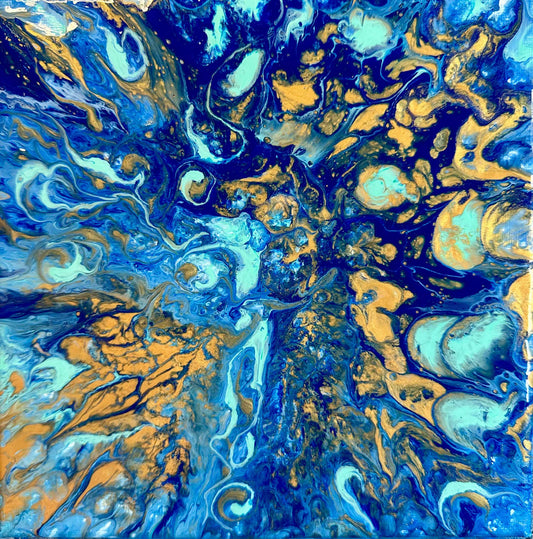 Original Painting - Abracadabra - Fluid Abstract Gold Blue