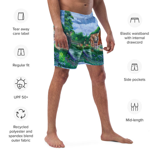 Men's Swim Trunks - River Melody - Impressionist Landscape
