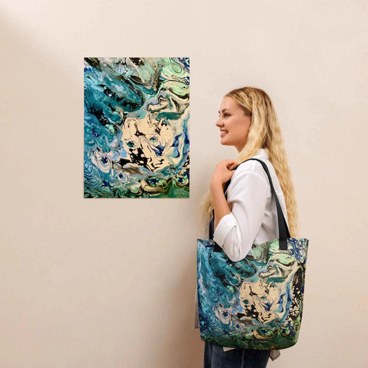 Tote Bag - Good Tidings - Fluid Blue Gold Ocean