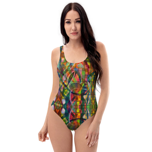 One Piece Swimsuit - Organic Life - Abstract Geometric Art