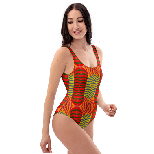 One Piece Swimsuit - No Brake Zone - Geometric Op Art Motion