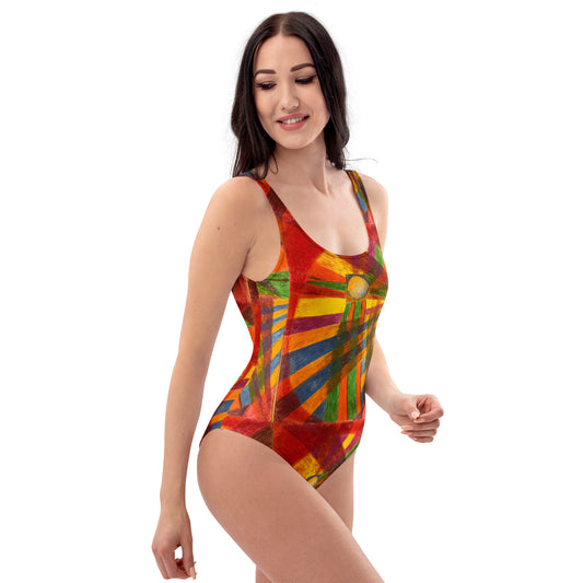 One Piece Swimsuit - Solar Burst - Geometric Colourful Art