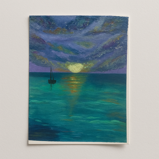 Twilight Sail – A6 Original Mini Art / Greeting Card